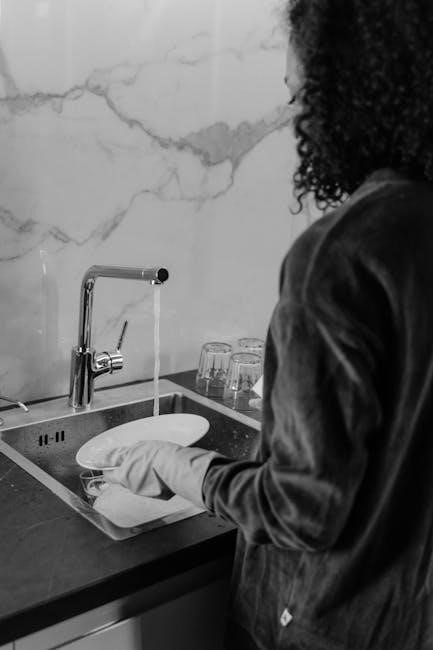 For painted or plastic exteriors, a mild dish soap and water solution works effectively․ Rinse thoroughly and dry with a soft cloth․ Promptly wipe up spills to prevent staining․ Consistent exterior care enhances the dishwasher’s aesthetic appeal and protects its finish․