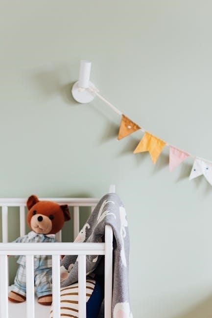 Never place the crib near windows with cords or drapery pulls‚ posing a strangulation hazard. Avoid using pillows‚ blankets‚ or bumper pads within the crib‚ as these can increase the risk of suffocation. Maintain a firm‚ flat mattress that fits snugly within the crib frame‚ leaving no gaps.